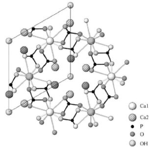 Зубная эмаль состоит почти из чистого гидроксиапатита Ca(1)4Ca(2)6(PO4)6(OH)2. В структуре гидроксиапатита также содержится 3-4% карбонатов.