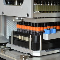 A benchtop, high-speed whole rack tube capper/decapper that can automatically remove and dispose of screw caps from a whole rack of tubes in 96 format.