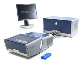 Apparatus for studying adsorption interactions in the liquid phase (based on quartz resonators ) Q-Sence E-4 (BiolinScientific) allows to determine the thickness, weight, viscoelastic properties of the adsorbate layer. Sensitivity to change in mass of 1.8 ng/cm2 temperature range from room temperature to 65оC.